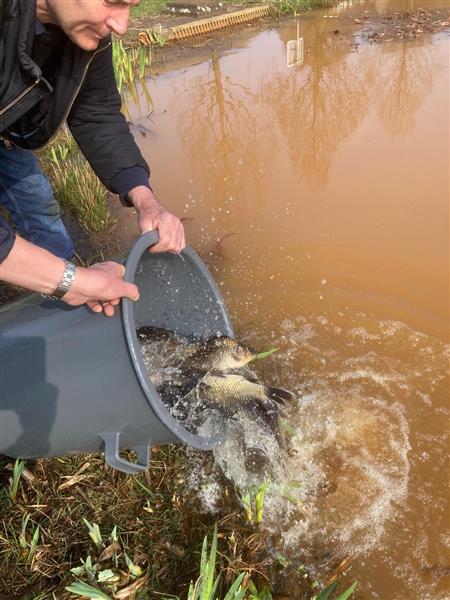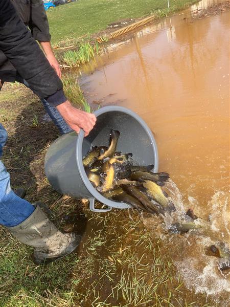Eén van de verantwoordelijkheden van HSV Dongen is het zorgen voor een aantrekkelijk en gevarieerd visbestand in de wateren die zij pachten. Daarom heeft op 25 maart 2025 weer een onderhoudsuitzetting plaatsgevonden, bestaande uit voorn, kroeskarper en zeelt. Wij hopen dat deze vissen zicht thuis voelen in de vijvers in de Hoge akker en dat iedereen zorgvuldig met deze vis omgaat.